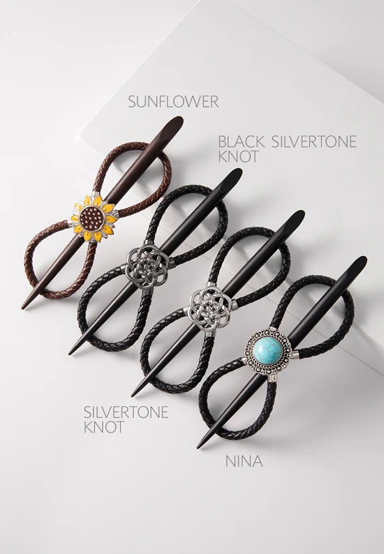 The Braided 8 is one of those pieces that just works. The genuine leather feels sturdy yet comfortable, the design is timeless, and it holds beautifully all day. Each style has its own personality, and the coordinating hair stick makes it feel finished without being fussy. Easy, dependable, and effortlessly pretty.