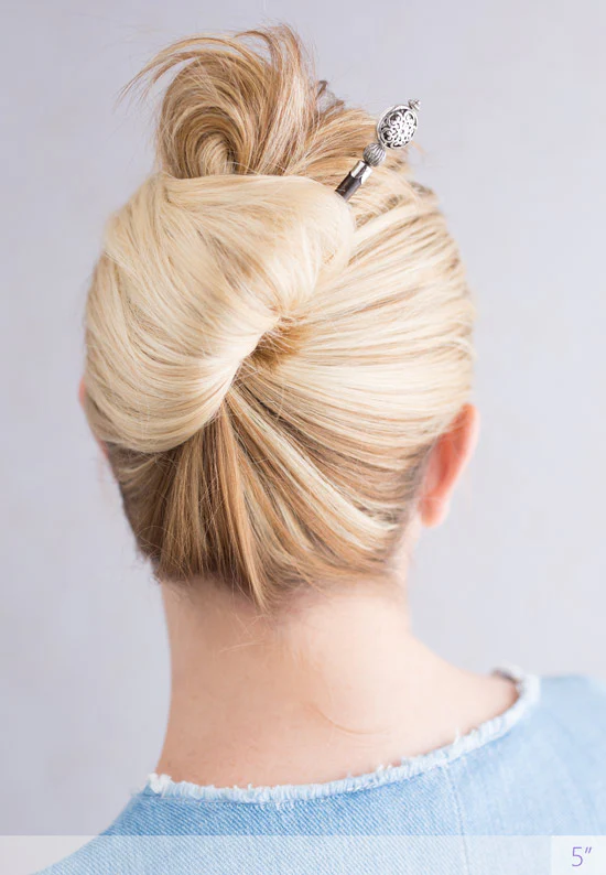 Cinque brings a little structure with a soft touch. The antiqued geometric flower and dark wood stick create an easy, polished look whether you’re doing a simple half-up twist or a loose bun. It’s a favorite when I want something pretty that still feels effortless.