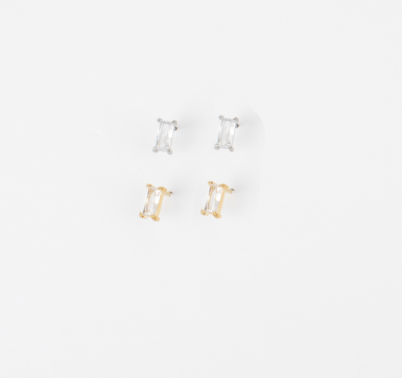 Try this: Baguette Flat Back Earrings — modern, rectangular, and oh-so-polished. Their secure screw-on flat backs make them perfect for all-day wear.