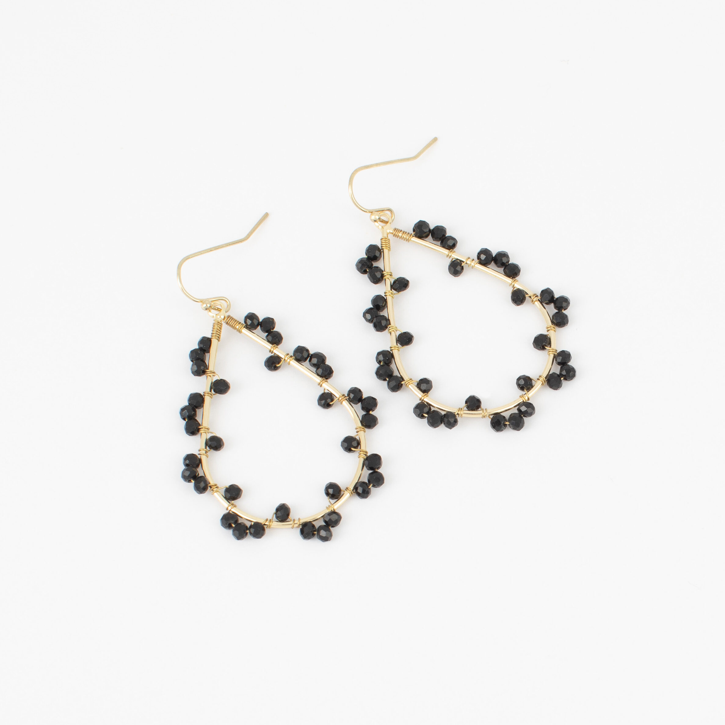 Elevate your look with the $23 Ivy Earrings! Teardrop-shaped and wire-wrapped with black crystals, they mix sophistication with a bold edge. Lightweight and versatile, perfect for day or night.