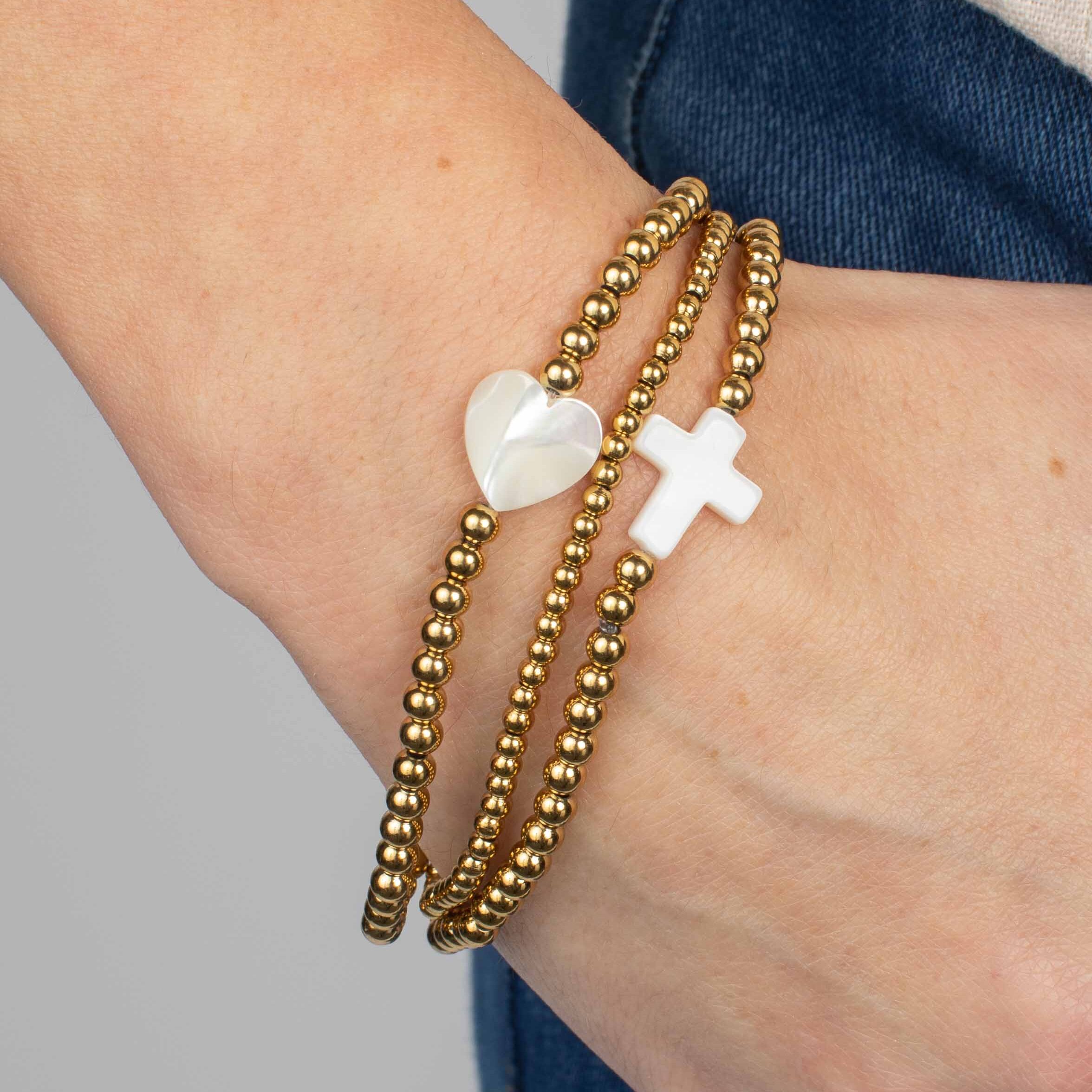 Playful and elegant—the $38 Nala Bracelet Set includes three stretch strands with bubble beads and sea shell charms.