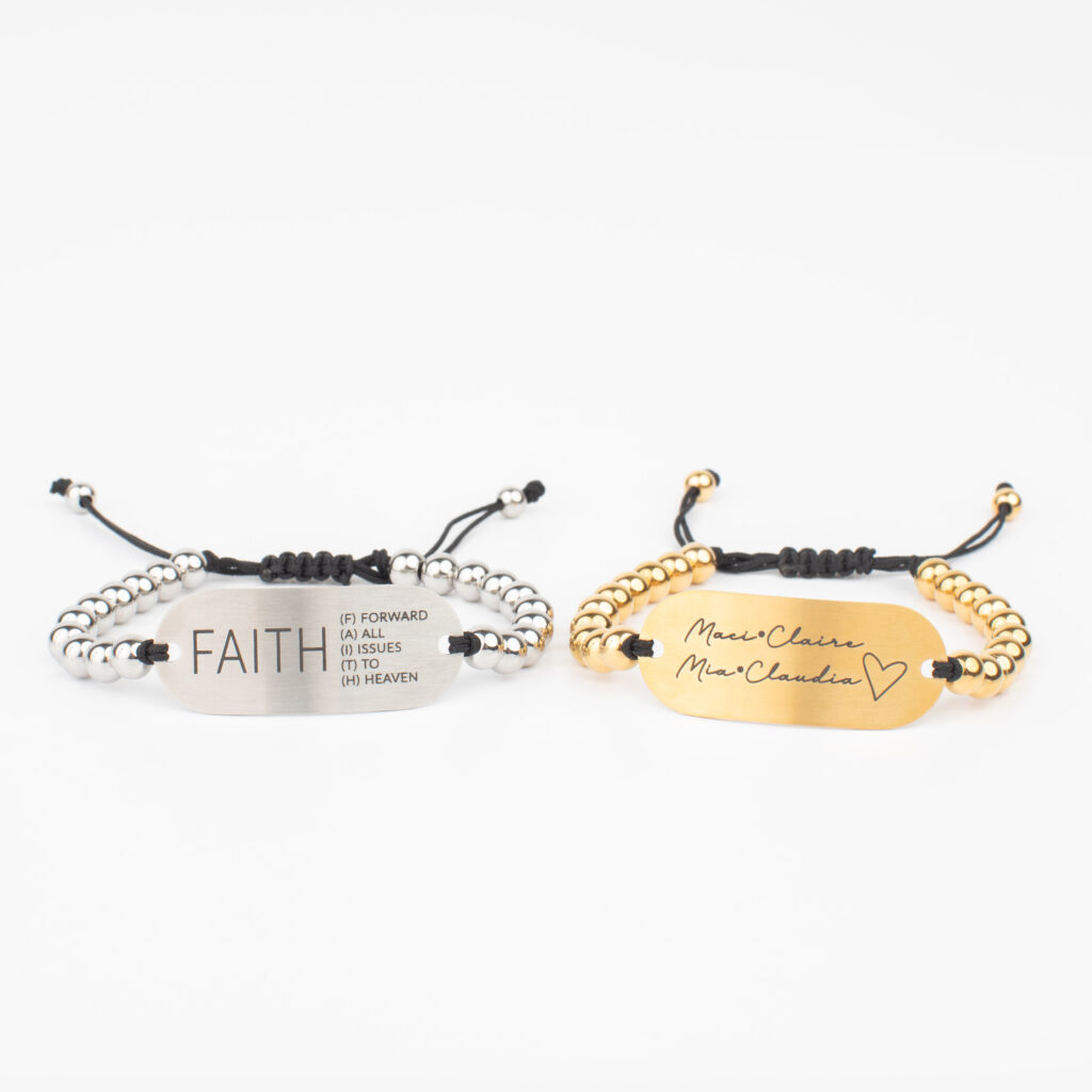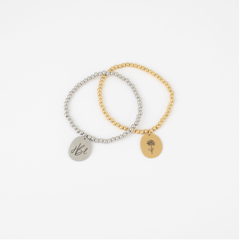 Choose your bracelet, then add the coin charm that tells your pet’s story. Each piece is available in gold or silver stainless, ready to wear as shown or personalized with your own engraving.